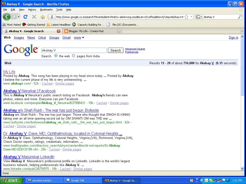 My website now shows up on the top of the 2nd page in Google results for “Akshay V”. If you just search for “Akshay”, almost all the results display something related to Akshay Kumar. I really hate Akshay Kumar for hogging all the limelight. This reminds me I need to add some meta data in the website.